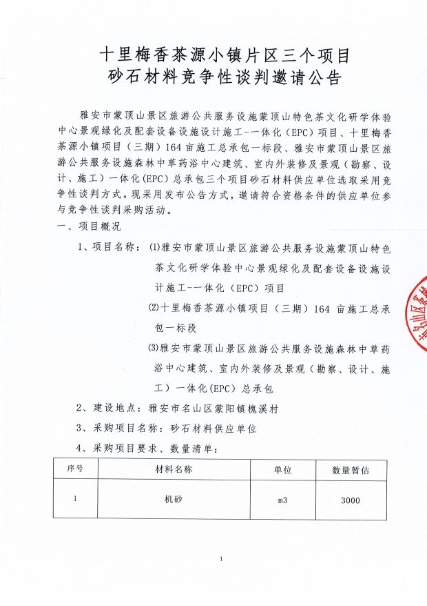 十里梅香茶源小鎮(zhèn)片區(qū)三個(gè)項(xiàng)目砂石材料競爭性談判邀請(qǐng)公告