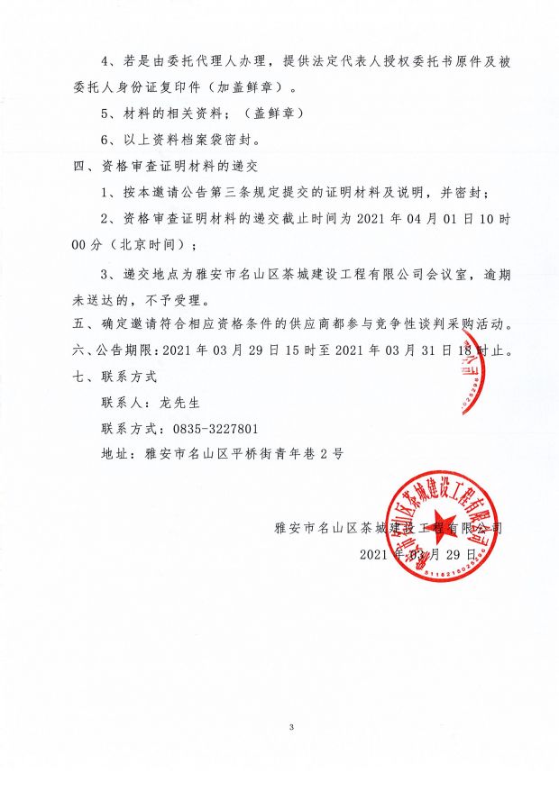 雅安市名山區(qū)茶城建設(shè)工程有限公司及子公司全面審查詢價(jià)公告...
